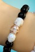 Make a bold statement with this unique bracelet featuring intricately hand-carved pearl skulls paired with glossy black agate gemstones. The contrast between the luminous, iridescent skulls and the deep, polished agate beads creates a striking balance of elegance and edge. Perfect for those who love distinctive, conversation-starting jewelry with a touch of mystique.