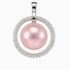 A timeless sterling silver circle pendant adorned with two rows of shimmering pavé-set stones Its elegant design captures light and grace from every angle, making it a stunning statement of refined beauty, when you add a pearl.